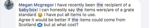 苏格兰政府表示,政府发放婴儿盒子的普及率达到了77%。自去年8月开始,一共发放了约2.2万个盒子,父母们对盒子里的内容非常满意。