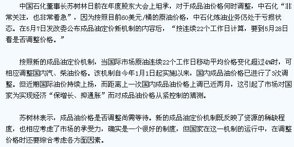 上一条新闻: 油价涨或不涨?26日见分晓 部分加油站囤油  [2009/5/23]