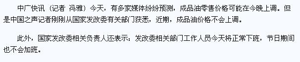 国家发改委辟谣:近期国家成品油价格不会上调