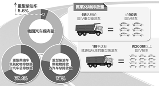 中国石化[1.03% 资金 研报]化工技术专家乔映宾介绍说,一辆达标的国IV重型柴油车排放的氮氧化物,相当于约90辆国IV轿车的排放。而不达标或更低标准的重型柴油车,排放约是200辆以上的国IV轿车。“2013年,我国重型柴油车达到了663万辆。2014年,预计增加约80万辆。目前,这一数字依然在不断增加。”