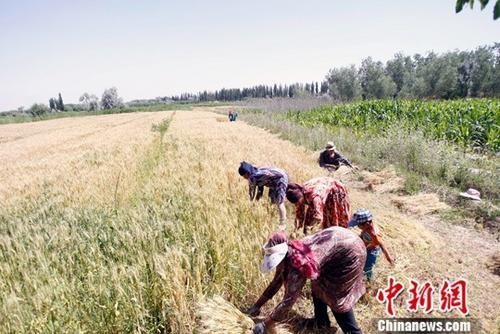 资料图:农民正在抢收夏粮。中新社记者 王小军 摄